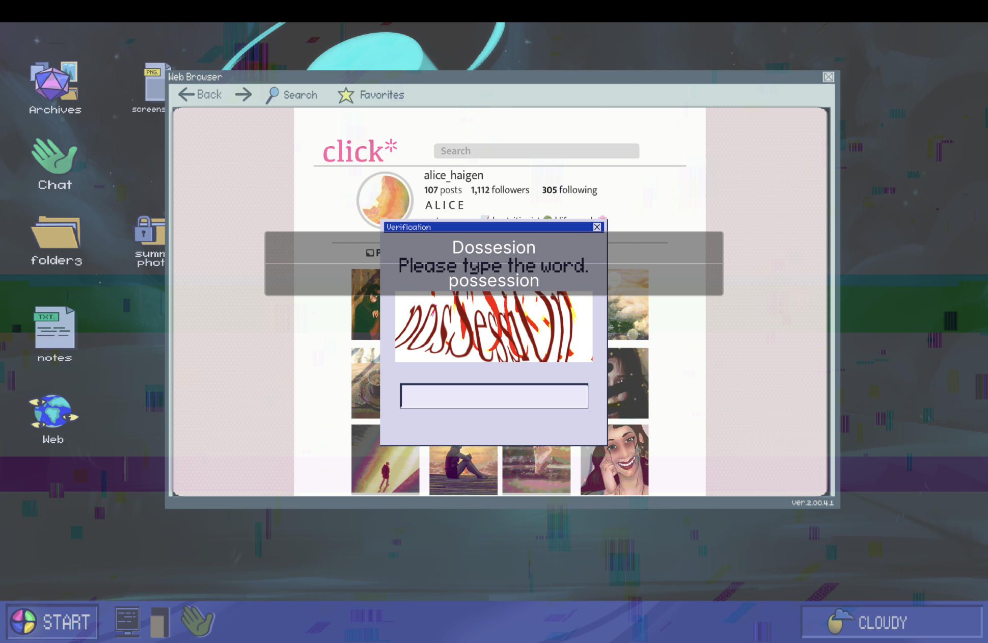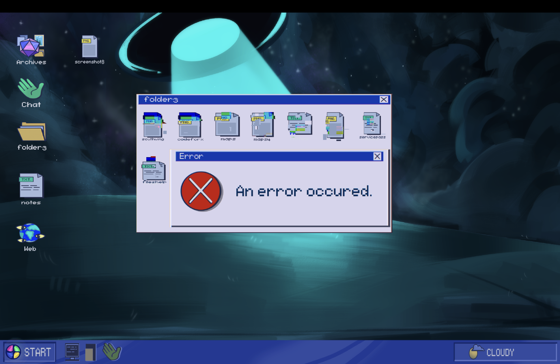 A visual novel created in Unity for a horror game jam. Includes a virtual computer interaction system.