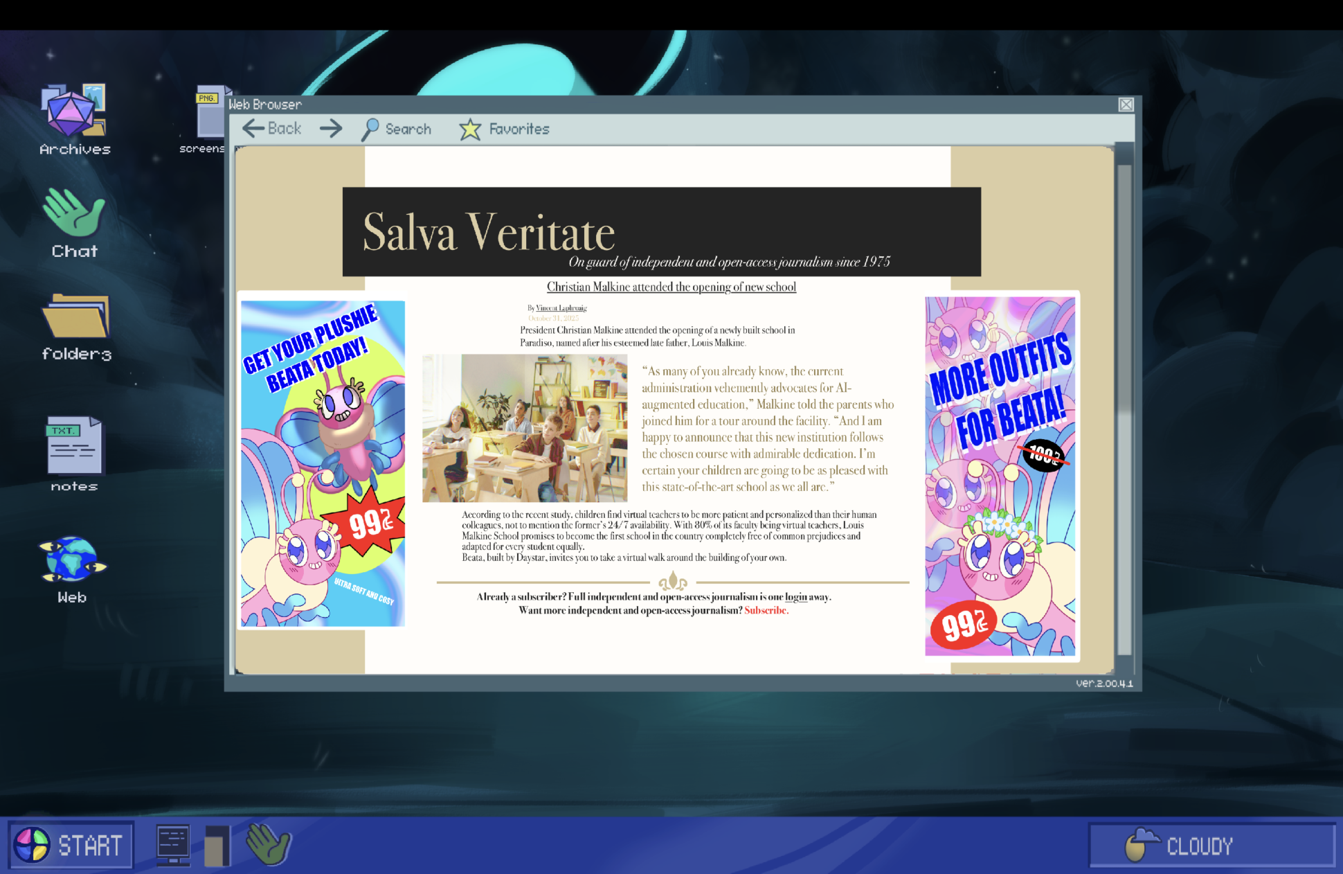 Safe Web is a visual novel game I helped develop for a horror game jam. The game features a virtual computer interaction system where players can navigate through files, go on the web, and uncover the story. The game combines elements of horror and mystery to create an engaging experience.